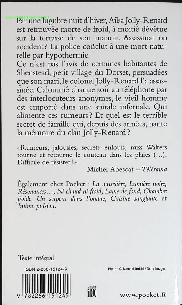 Ce n'est pas l'avis de certaines habitantes de Shenstead, petit village du Dorset, persuadées que son mari, le colonel Jolly-Renard, l'a assassinée. Calomnié chaque soir au téléphone par des interlocuteurs anonymes, le vieil homme est emporté dans une spirale infernale. Qui alimente ces rumeurs ? Et quel est le terrible secret de famille qui, depuis des années, hante la mémoire du clan Jolly-Renard ?