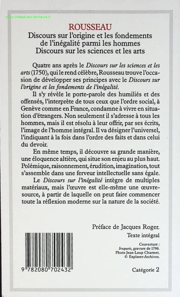 Titre : Discours sur l'origine et les fondements de l'inégalité parmi les hommes - Discours sur les sciences et les arts - Jean-Jacques Rousseau - livre