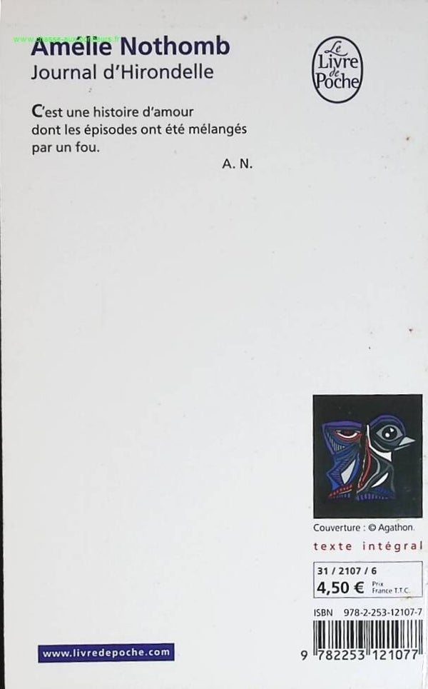 Titre : Journal d'hirondelle - Amélie Nothomb - livre