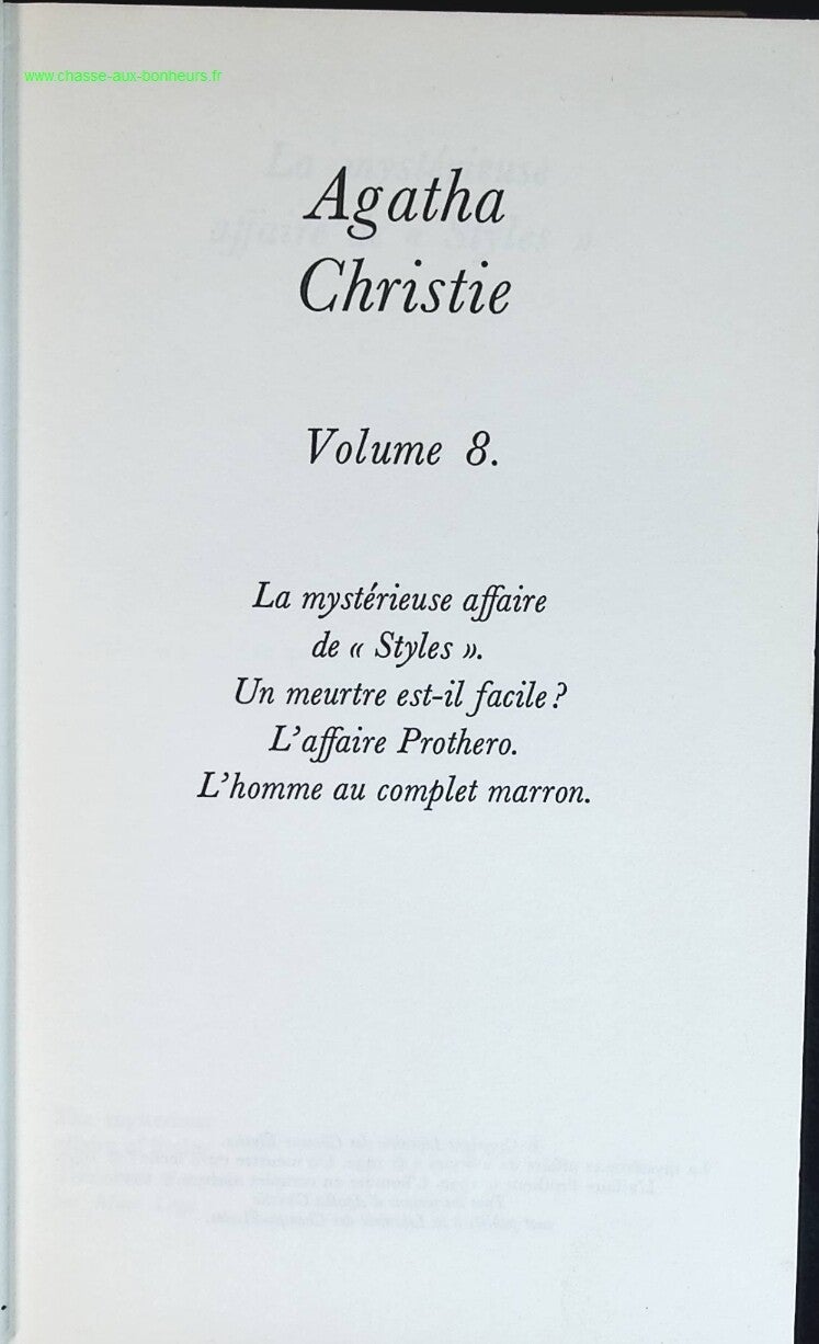 Titre : Œuvres complètes - Agatha Christie - tome 8 - La Mystérieuse Affaire De Styles, Un Meurtre Est-Il Facile ? L'Affaire Prothéro, L'Homme Au Complet Marron - livre