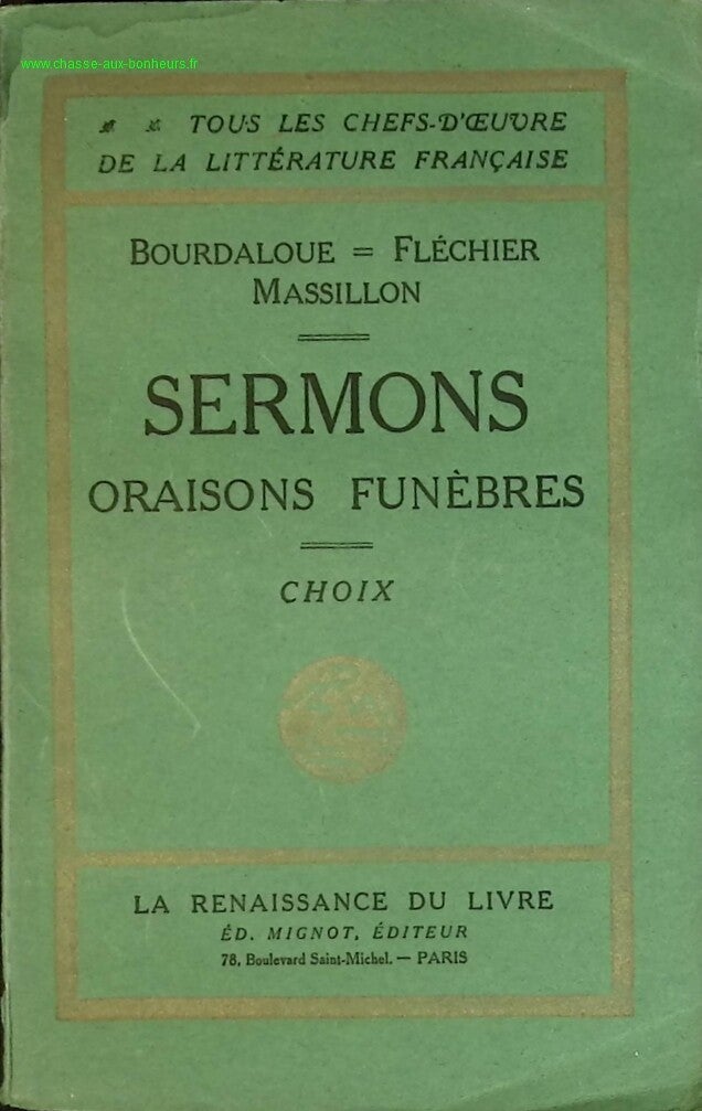 Sermons - Oraisons funèbres - Fléchier Massillon Bourdaloue - livre