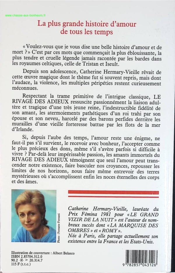 "Voulez- vous que je vous dise une belle histoire d'amour et de mort ?" C'est par ces mots que commençait la plus éblouissante, la plus tendre et cruelle légende jamais racontée par les bardes dans les royaumes celtiques, celle de Tristan et d'Iseult. Depuis son adolescence, Catherine Hermary-Vieille rêvait de cette oeuvre magique dont le thème fut si souvent repris, mais dont l'audace, la violence, les multiples péripéties restent curieusement méconnues. Respectant la trame primitive de l'intrigue classique, Le Rivage des Adieux ressuscite pleinement la liaison adultère et tragique d'une très jeune reine, l'indestructible fidélité de son amant, les atermoiements pathétiques d'un roi trahi par son épouse et son neveu, harcelé par les barons perfides derrière les murailles d'une vieille forteresse battue par les flots de la mer d'Irlande. Si, depuis l'aube des temps, l'amour reste une énigme, ne faut-il pas, s'il survient, le recevoir avec bonheur, l'accepter comme le plus précieux des dons, même s'il se révèle parfois si difficile à vivre ? Par-delà leur impérissable passion, les amants immortels du Rivage des Adieux témoignent que seul l'amour peut transcender notre existence, faire basculer nos croyances, repousser les limites de nos horizons, nous faire entrevoir des terres mystérieuses où s'accomplissent enfin les noces éternelles des corps et des âmes.