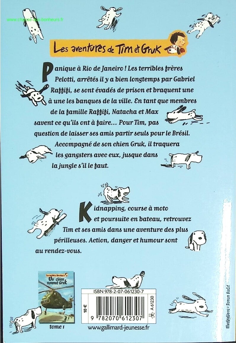 Panique à Rio de Janeiro ! Les terribles frères Pelotti, arrêtés il y a bien longtemps par Gabriel Raffifi, se sont évadés de prison et braquent une à une les banques de la ville. En tant que membres de la famille Raffifi, Natacha et Max savent ce qu'ils ont à faire... Pour Tim, pas question de laisser ses amis partir seuls pour le Brésil. Accompagné de son chien Gruk, il traquera les gangsters avec eux, jusque dans la junge si il le faut.