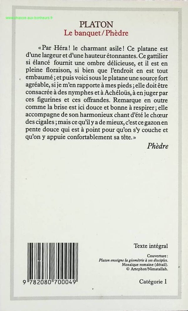 Dans Le Banquet, le poète Agathon donne un festin pour célébrer sa victoire lors d'un concours de poésie. L'occasion pour chaque invité de faire un éloge d'Éros en présentant sa vision de l'amour. À leur suite, Socrate, qui prétend rapporter les paroles de l'étrangère Diotime, rattache l'amour au désir d'immortalité qui anime tous les êtres vivants. L'éloge de l'amour se détache alors du monde sensible pour tendre vers une dimension nouvelle, celle de l'Intelligible.C'est aussi d'Éros dont il est question dans le Phèdre, où Platon distingue deux sortes d'amour : l'amour vulgaire - égoïste, jaloux, tyrannique - et l'amour honnête qui correspond à l'Amour céleste. Les âmes humaines, qui n'ont fait qu'apercevoir le monde des Idées avant de s'incarner dans un corps, conservent un souvenir fugace de la Beauté. C'est cette recherche de la Beauté entraperçue qui provoquerait la quête de l'amour..