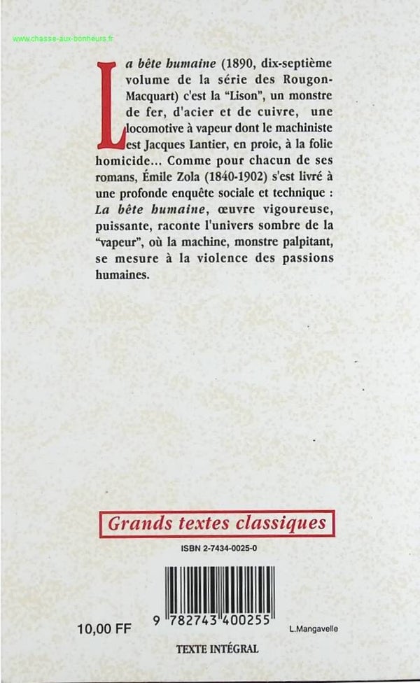 Dix-septième volume des « Rougon-Macquart », « La Bête Humaine » est un voyage infernal le long d'une ligne de chemin de fer. Zola dresse la fresque d'un homme tourmenté par l'amour et sa condition, et où la démence côtoie le crime.