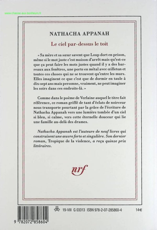 Sa mère et sa soeur savent que Loup dort en prison, même si le mot juste c'est maison d'arrêt mais qu'est-ce que ça peut faire les mots justes quand il y a des barreaux aux fenêtres, une porte en métal avec oeilleton et toutes ces choses qui ne se trouvent qu'entre les murs. Elles imaginent ce que c'est que de dormir en taule à dix-sept ans mais personne, vraiment, ne peut imaginer les soirs dans ces endroits-là." Comme dans le poème de Verlaine auquel le titre fait référence, ce roman griffé de tant d'éclats de noirceur nous transporte pourtant par la grâce de l'écriture de Nathacha Appanah vers une lumière tombée d'un ciel si bleu, si calme, vers cette éternelle douceur qui lie une famille au-delà des drames.