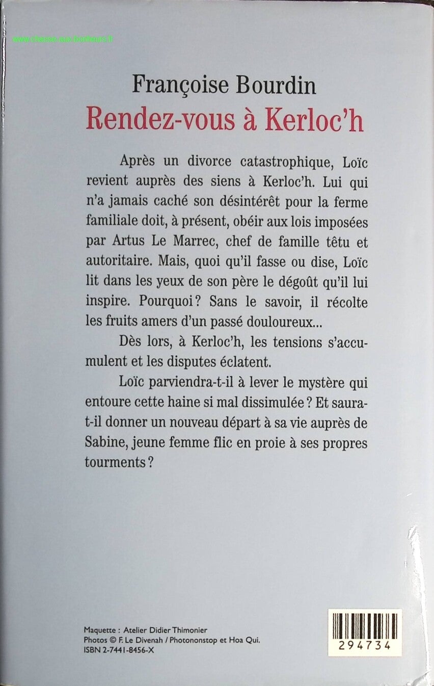 Après un divorce catastrophique, quelle idée merveilleuse de venir chercher du réconfort à Kerloc'h ! Pourtant, lorsque Loïc rentre au pays, ce ne sont pas les veillées chaleureuses autour du feu avec ses frères et sa soeur qui l'attendent, mais plutôt les travaux forcés... Lui qui n'a jamais caché son désintérêt pour la ferme familiale doit maintenant obéir aux lois imposées par Arthus le Marrec, chef de famille autotritaire et têtu. Mais, quoi qu'il fasse ou dise, Loïc lit sans les yeux de son père le dégoût qu'il lui inspire. Sans le savoir, il récolte les fruits amers d'un passé douloureux... L'espoir renaît lorsqu'il rencontre Sabine, une ravissante jeune femme flic.