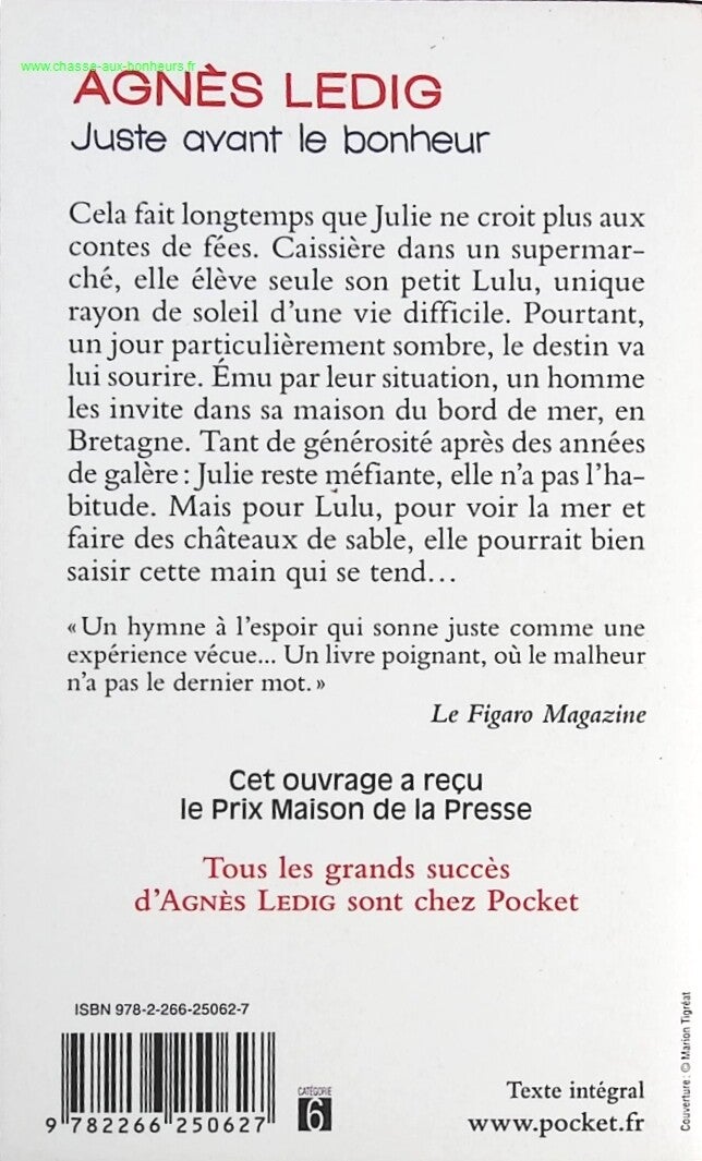 Titre : Juste avant le bonheur - Agnès Ledig - Livre