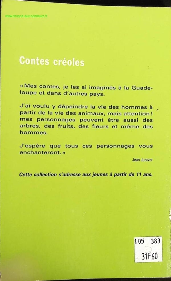 Mes contes, je les ai imaginés à la Guadeloupe et dans d'autres pays. J'ai voulu y dépeindre la vie des hommes à partir de la vie des animaux, mais attention ! Mes personnages peuvent être aussi des arbres, des fruits, des fleurs et même des hommes. J'espère que tous ces personnages vous enchanteront ".