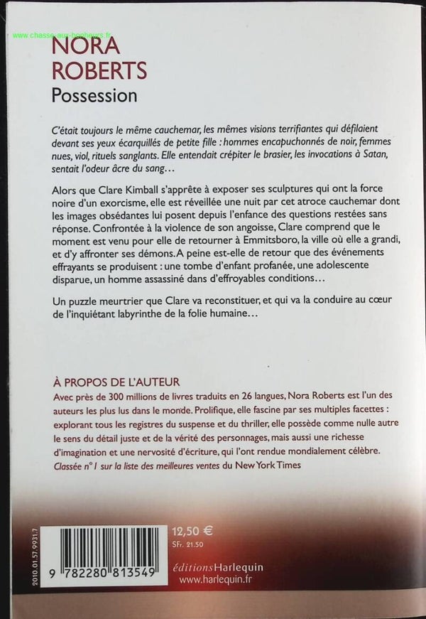 Alors que Clare Kimball s'apprête à exposer ses sculptures qui ont la force noire d'un exorcisme, elle est réveillée une nuit par cet atroce cauchemar dont les images obsédantes lui posent depuis l'enfance des questions restées sans réponse. Confrontée à la violence de son angoisse, Clare comprend que le moment est venu pour elle de retourner à Emmitsboro, la ville où elle a grandi, et d'y affronter ses démons. A peine est-elle de retour que des événements effrayants se produisent : une tombe d'enfant profanée, une adolescente disparue, un homme assassiné dans d'effroyables conditions... Un puzzle meurtrier que Clare va reconstituer, et qui va la conduire au coeur de l'inquiétant labyrinthe de la folie humaine... A propos de l'auteur Avec près de 300 millions de livres traduits en 26 langues, Nora Roberts est l'un des auteurs les plus lus dans le monde. Prolifique, elle fascine par ses multiples facettes : explorant tous les registres du suspense et du thriller, elle possède comme nulle autre le sens du détail juste et de la vérité des personnages, mais aussi une richesse d'imagination et une nervosité d'écriture, qui l'ont rendue mondialement célèbre. Classée n°1 sur la liste des meilleures ventes du New York Times