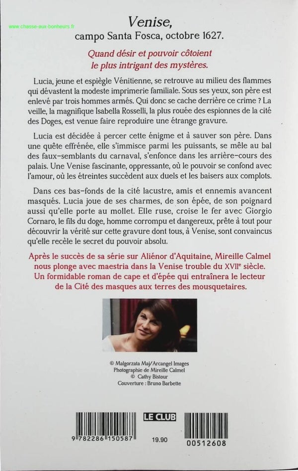 Après le succès de sa série sur Aliénor d'Aquitaine, Mireille Calmel nous plonge avec maestria dans la Venise trouble du XVIIe siècle. Un formidable roman de cape et d'épée qui entraînera le lecteur de la cité des masques aux terres des mousquetaires.