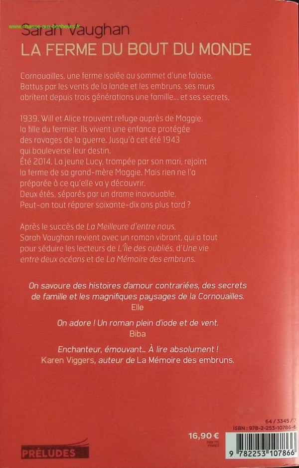 Destinées prises dans les tourments de la Seconde Guerre mondiale, enfant disparu, paysages envoûtants de la Cornouailles, La Ferme du bout du monde a tout pour séduire les lecteurs de L’Île des oubliés, d’Une vie entre deux océans et de La Mémoire des embruns.
