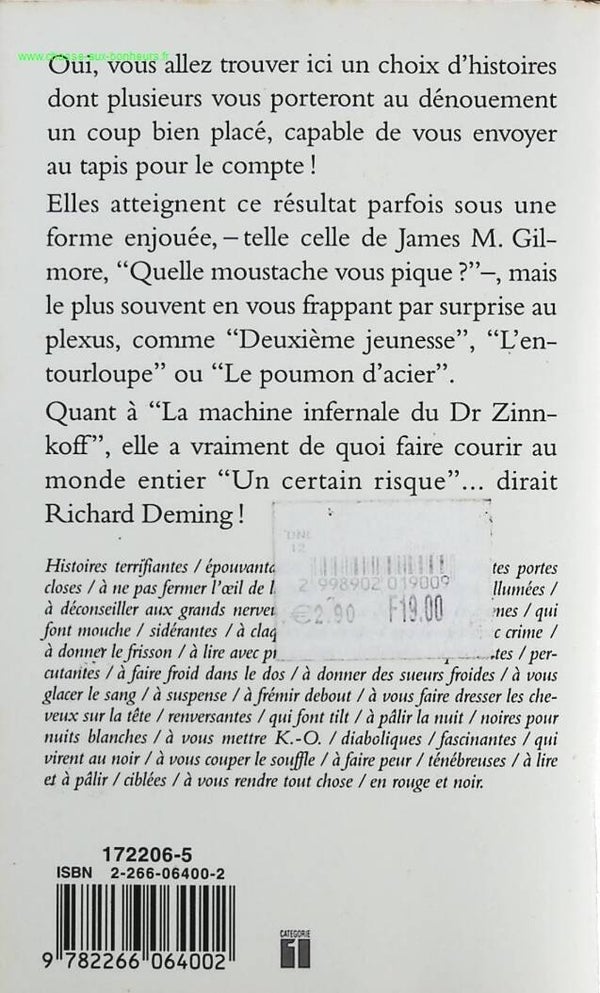 Oui, vous allez trouver ici un choix d'histoires dont plusieurs vous porteront au dénouement un coup bien placé, capable de vous envoyer au tapis pour le compte !