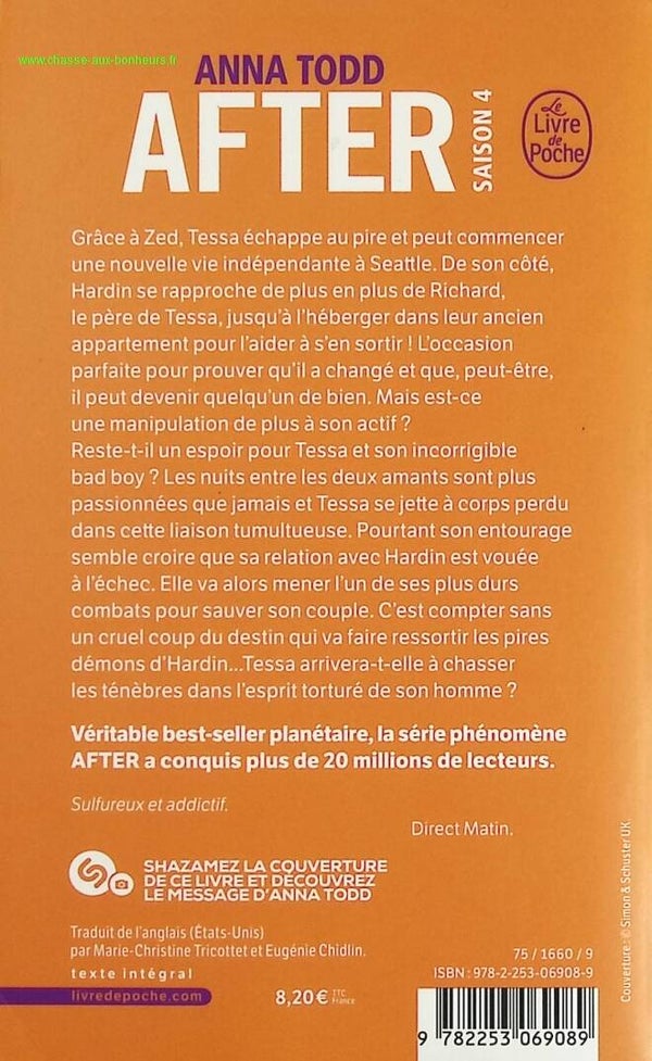 Reste-t-il un espoir pour Tessa et son incorrigible bad boy ? Les nuits entre les deux amants sont plus passionnées que jamais et Tessa se jette à corps perdu dans cette liaison tumultueuse. Pourtant son entourage semble croire que sa relation avec Hardin est vouée à l'échec. Elle va alors mener l'un de ses plus durs combats pour sauver son couple. C'est sans compter sur un cruel coup du destin qui va faire ressortir les pires démons d'Hardin...
