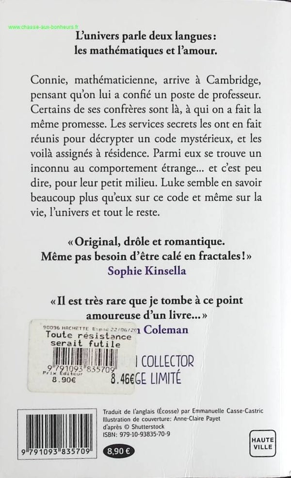 « J’ai adoré ce livre. C’est original, drôle et romantique. Même pas besoin d’être calés en fractales ! » Sophie Kinsella