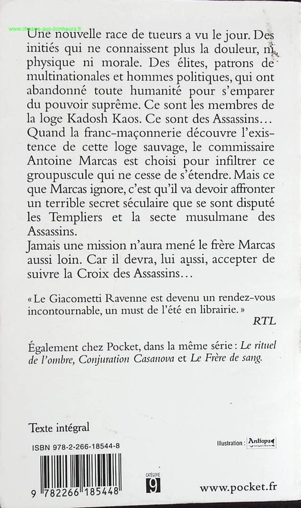 Une nouvelle race de tueurs a vu le jour. Des initiés qui ne connaissent plus la douleur. Des élites, membres de la loge Kadosh Kaos, ayant abandonné toute humanité pour s'emparer du pouvoir suprême : des Assassins...