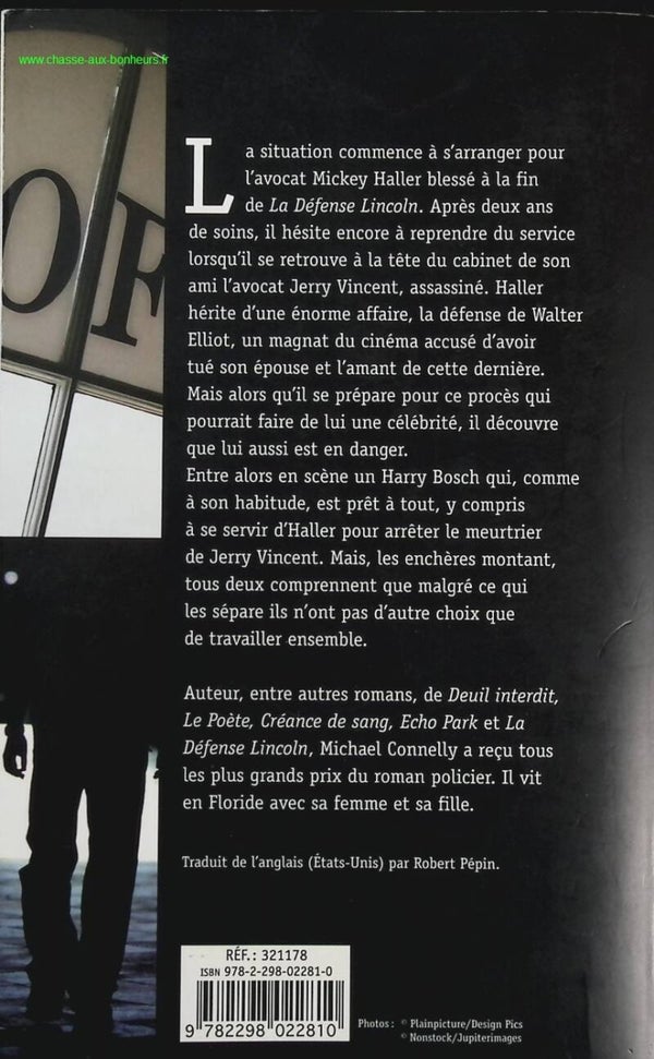 L’avocat de la défense Mickey Haller s’est remis de sa blessure et de son addiction aux antalgiques et, après avoir hérité du cabinet de son collègue assassiné Jerry Vincent, se prépare à défendre un magnat d’Hollywood, Walter Elliot, accusé d’avoir assassiné son épouse et l’amant de celle-ci. L’affaire est énorme et pourrait le propulser au plus haut de sa carrière. Détail troublant, Elliot ne s’inquiète que d’une chose : que le procès, dont l’issue pourrait l’expédier en prison à vie, se déroule à la date prévue. Et, plus alarmant, l’assassin de Vincent pourrait bien s’en prendre à Haller.