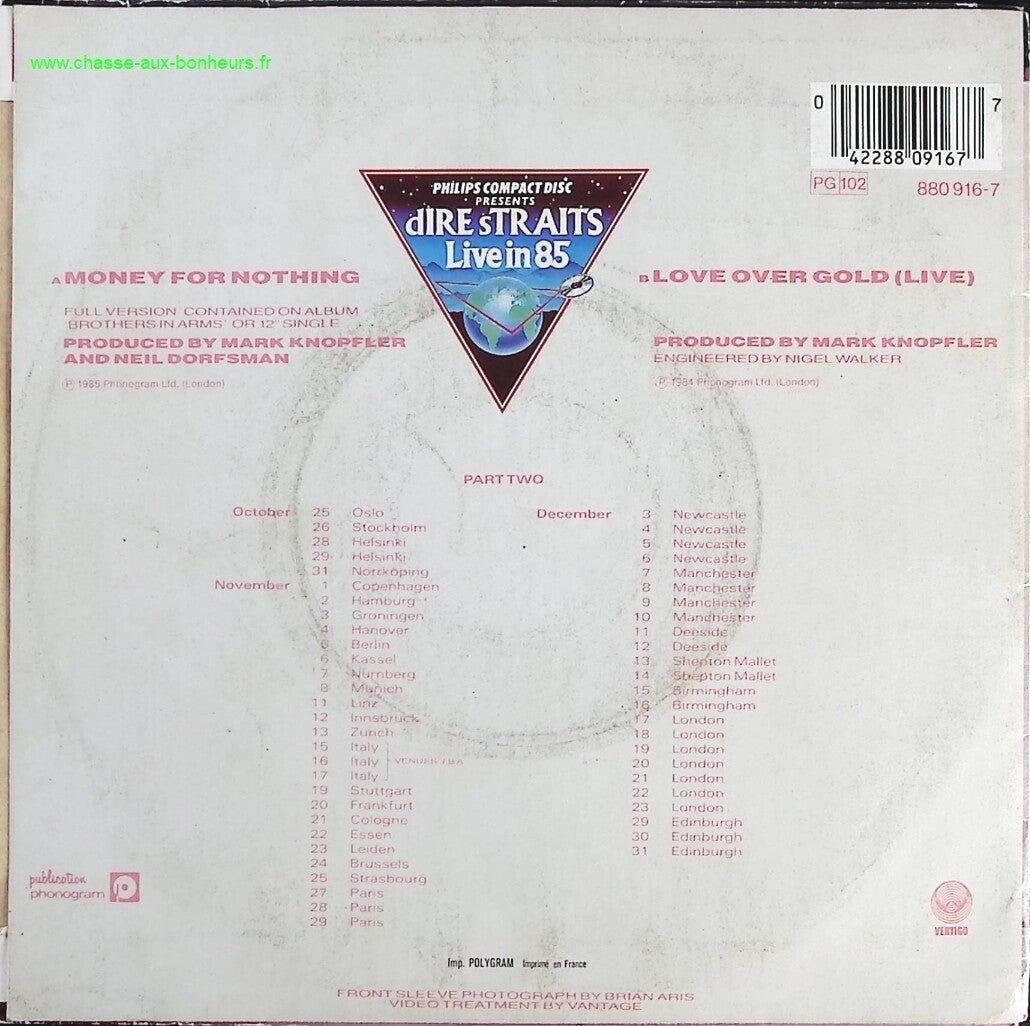 Money for Nothing - Dire Straits - disque vinyle 45 tours