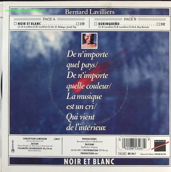 Noir et Blanc - Bernard Lavilliers - disque vinyle 45 tours