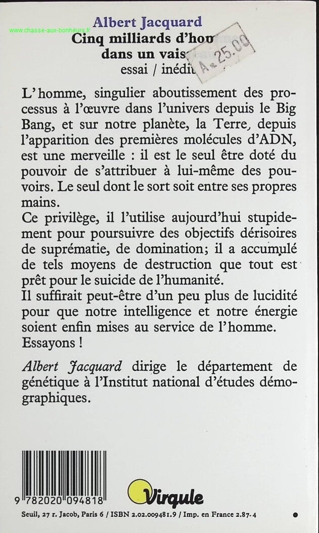 Titre : Cinq Milliards d'hommes dans un vaisseau - Albert Jacquard - Livre