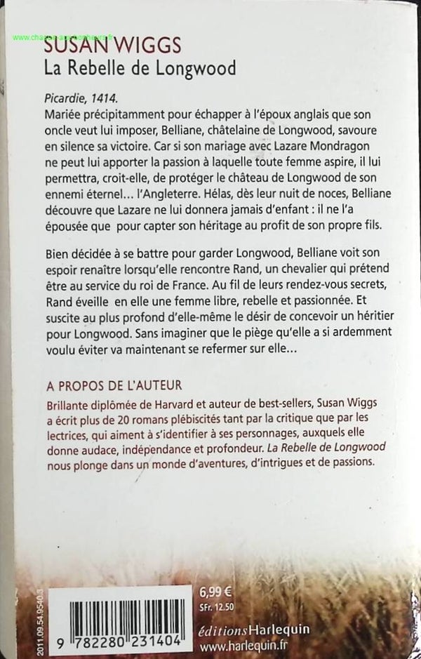 Picardie, 1414. Mariée précipitamment pour échapper à l'époux anglais que son oncle veut lui imposer, Belliane, châtelaine de Longwood, savoure en silence sa victoire. Car si son mariage avec Lazare Mondragon ne peut lui apporter la passion à laquelle toute femme aspire, il lui permettra, croit-elle, de protéger le château de Longwood de son ennemi éternel : l'Angleterre. Hélas, dès leur nuit de noces, Belliane découvre que Lazare ne lui donnera jamais d'enfant : il ne l'a épousée que pour capter son héritage au profit de son propre fils. Bien décidée à se battre pour garder Longwood, Belliane voit son espoir renaître lorsqu'elle rencontre Rand, un chevalier qui prétend être au service du roi de France. Au fil de leurs rendez-vous secrets, Rand éveille en elle une femme libre, rebelle et passionnée. Et suscite au plus profond d'elle-même le désir de concevoir un héritier pour Longwood. Sans imaginer que le piège qu'elle a si ardemment voulu éviter va maintenant se refermer sur elle. A propos de l'auteur : Brillante diplômée de Harvard et auteur de best-sellers, Susan Wiggs a écrit plus de 20 romans plébiscités tant par la critique que par les lectrices, qui aiment à s'identifier à ses personnages, auxquels elle donne audace, indépendance et profondeur. La rebelle de Longwood nous plonge dans un monde d'aventures, d'intrigues et de passions.