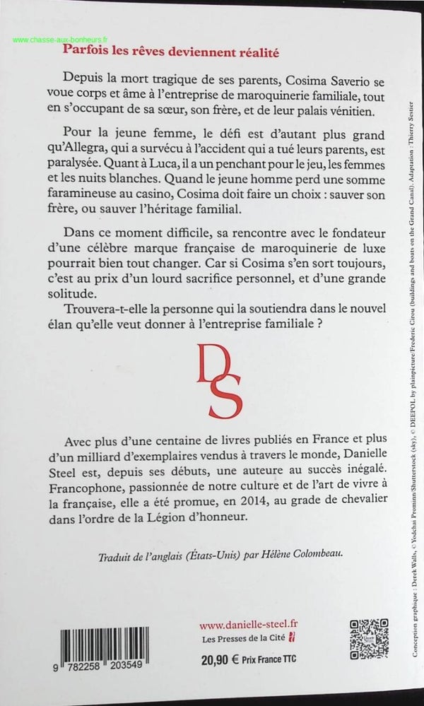 Depuis la mort tragique de ses parents, Cosima Saverio se voue corps et âme à l'entreprise de maroquinerie familiale, tout en s'occupant de sa sœur, son frère, et de leur palais vénitien.
