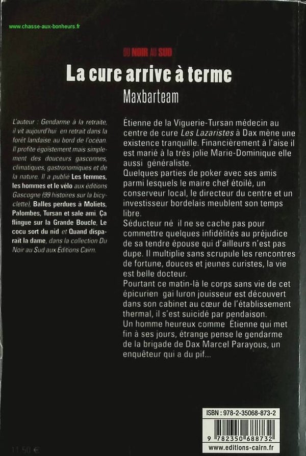 Jean-De-la-Viguerie-Tursan médecin au centre de cure « Les Lazaristes » à Dax mène une existence tranquille dans la souspréfecture landaise. Financièrement à l’aise il est marié à la très jolie Marie-Dominique elle aussi généraliste. Quelques parties de poker avec ses amis parmi lesquels le maire chef étoilé, un conserveur local, le directeur du centre et un investisseur bordelais meublent son temps libre. Séducteur né il ne se cache pas pour commettre quelques infidélités au préjudice de sa tendre épouse qui d’ailleurs n’est pas dupe. Il multiplie sans scrupule les rencontres de fortune, douces et jeunes curistes, la vie est belle docteur. Pourtant ce matin-là le corps sans vie de cet épicurien gai luron jouisseur est découvert dans son cabinet au coeur de l’établissement thermal, il s’est suicidé par pendaison. Un homme heureux comme Étienne qui met fin à ses jours, étrange pense le gendarme de la brigade de Dax Marcel Parayous, un enquêteur qui a du pif...