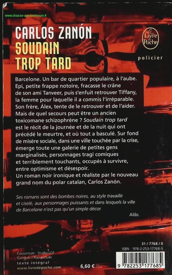 Titre : Soudain trop tard - Carlos Zanon - livre