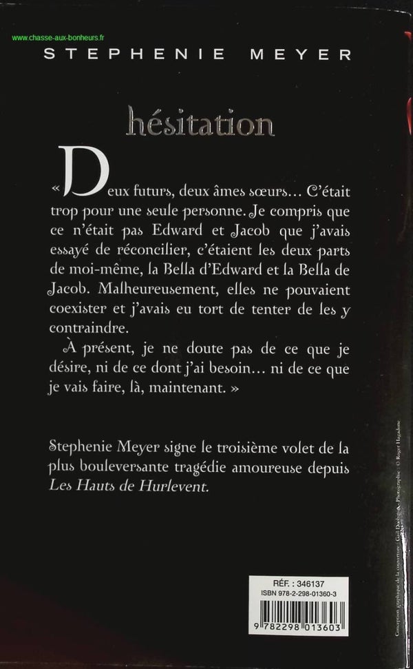Bella est perdue. Déchirée entre les deux hommes qu'elle aime, elle choisit finalement d'épouser Edward. Mais lorsqu'elle revoit Jacob, elle n'est plus sûre de rien : souhaite-t-elle vraiment qu'Edward la transforme en vampire après leur mariage? Mais surtout, doit-elle ensevelir le sentiment d'amour qui la submerge lorsqu'elle est face à Jacob ? La confusion règne dans son esprit déjà perturbé par les Volturi et Victoria, qui la menacent toujours...