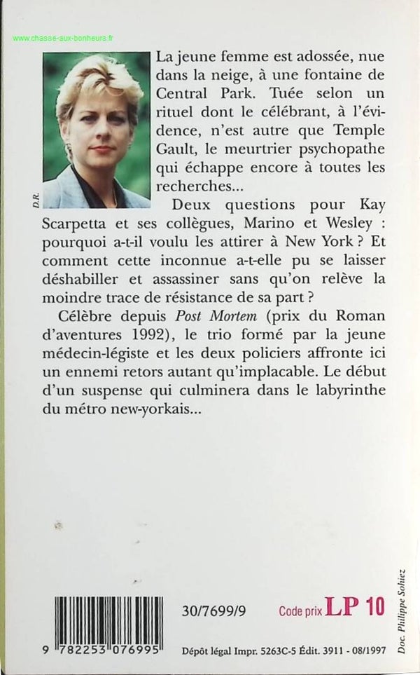 Une jeune femme est retrouvée nue, adossée à une fontaine de Central Park, à New York. Les recherches concernant son identité restent vaines. En revanche, Kay Scarpetta, Marino et Wesley devinent rapidement celle du tueur : Temple Gault. Mais le choix de la ville, de la victime et le changement de modus operandi les laissent perplexes. L’autopsie ne révélant aucune trace de contrainte, ils ne comprennent pas pourquoi la jeune femme a accepté de se déshabiller par ce froid glacial. Scarpetta lutte contre le découragement. À l’exception des dents de la victime, soignées de manière inhabituelle, les indices sont bien minces.