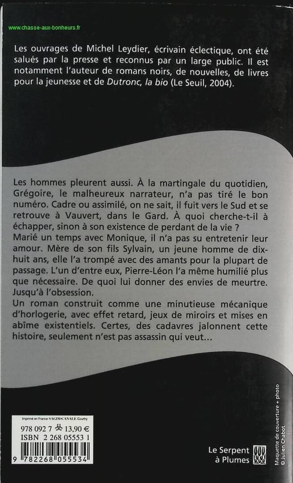 Les hommes pleurent aussi. À la martingale du quotidien, Grégoire, le malheureux narrateur, n'a pas tiré le bon numéro. Cadre ou assimilé, on ne sait, il fuit vers le Sud et se retrouve à Vauvert, dans le Gard. À quoi cherche-t-il à échapper, sinon à son existence de perdant de la vie ?