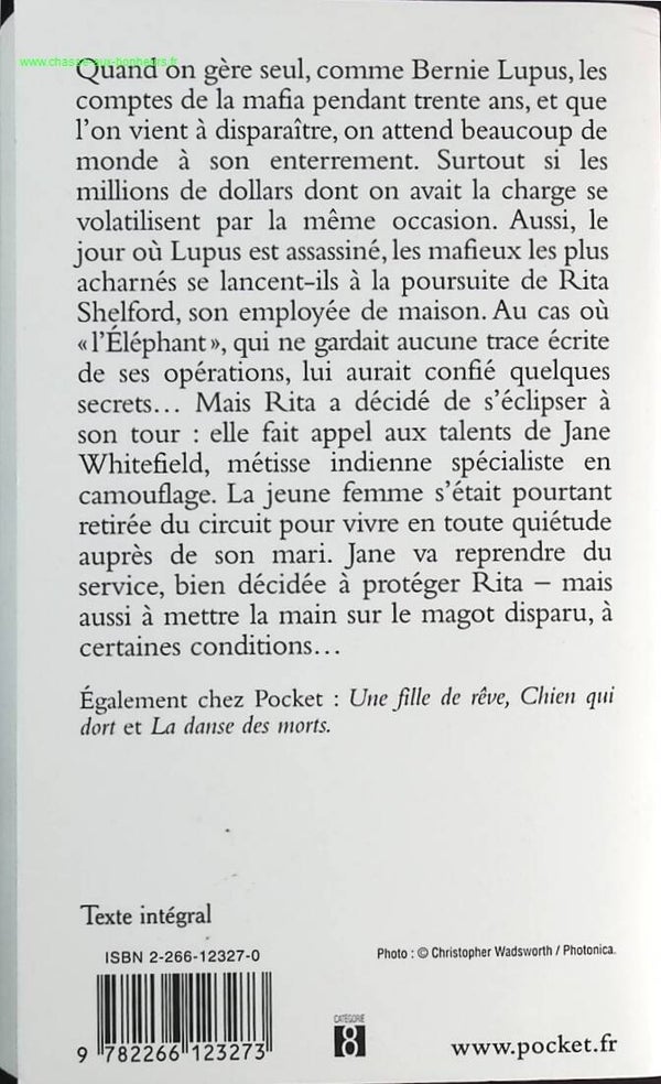 Quand on gère seul, comme Bernie Lupus, les comptes de la mafia pendant trente ans, et que l'on vient à disparaître, on attend beaucoup de monde à son enterrement. Surtout si les millions de dollars dont on avait la charge se volatilisent par la même occasion. Aussi, le jour où Lupus est assassiné, les mafieux les plus acharnés se lancent-ils à la poursuite de Rita Shelford, son employée de maison. Au cas où " l'Éléphant ", qui ne gardait aucune trace écrite de ses opérations, lui aurait confié quelques secrets...