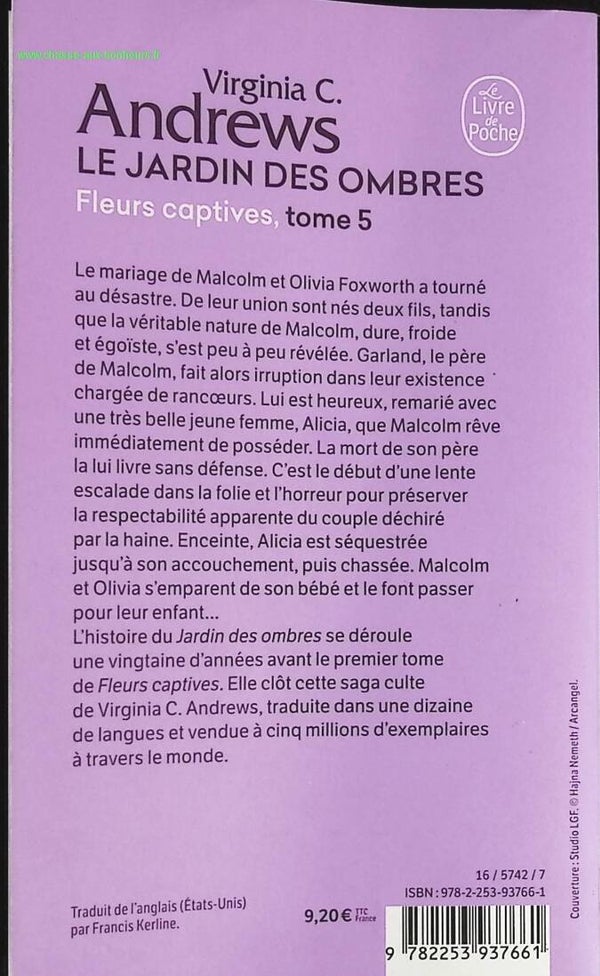 L’histoire du Jardin des ombres se déroule une vingtaine d’années avant le premier tome de Fleurs captives. Elle clôt cette saga culte de Virginia Andrews, traduite dans une dizaine de langues et vendue à cinq millions d’exemplaires à travers le monde.